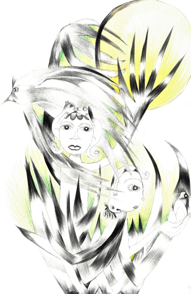 2021. Maiá Monami es una serie de dibujos en la que narro a mi hija Maiá (siendo ella la protagonista de dichos dibujos) la importancia de cuidar y mimar sus herencia africanas y europeas; culturas Ndongo, criolla y española, sin tener que renunciar a ninguna. Málaga, 2021. / Maiá monami is a group of drawings that talk about the importance for my daughter Maiá to take care of her two cultures, the Ndongo and Spanish one -the African and European-. Málaga, 2021.
